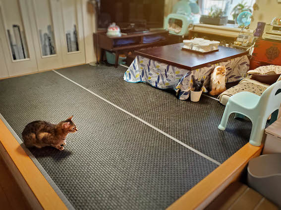 リビングではドンごろーが、もう一度念入りに見回っていました。何度も人が来ると落ち着かないようです。もう何も故障しないと良いですね。