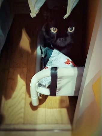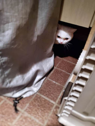コバンはやっぱりクローゼットに入るようです。「せ、拙者はお手伝いできませぬゆえ⋯」ハイ。出て来なくて結構です。