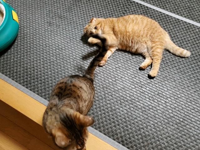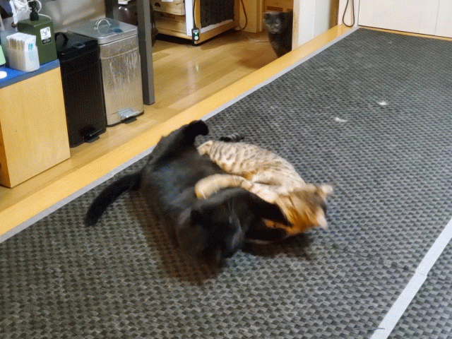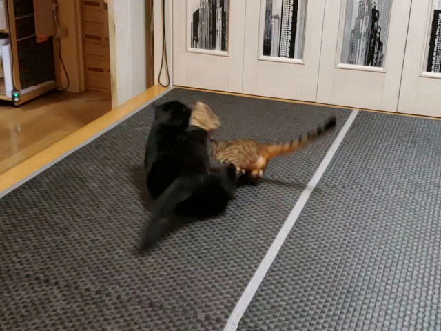 GIFの方は部屋を揺らして、寝ているドンを起こす気でしょうか。“ぐーぐるさん”ドンと遊びたいのかも知れません。