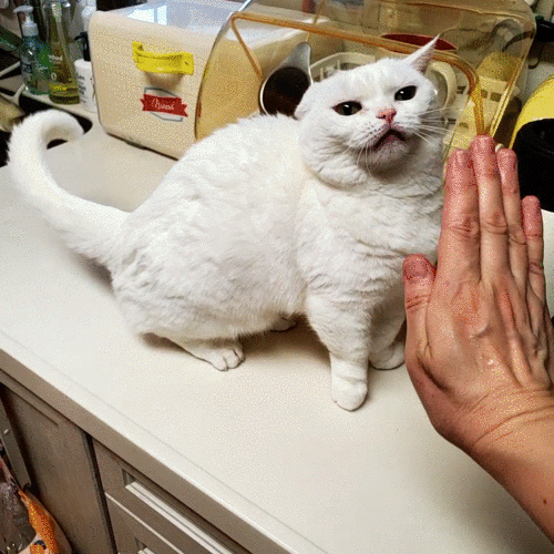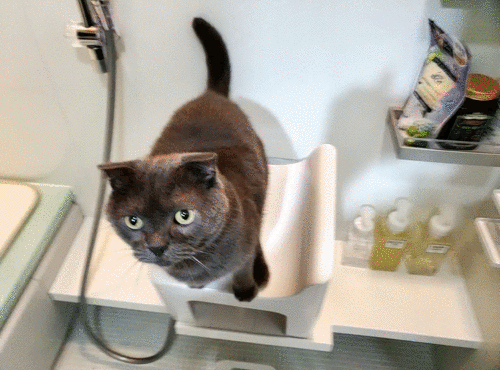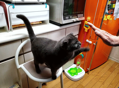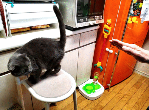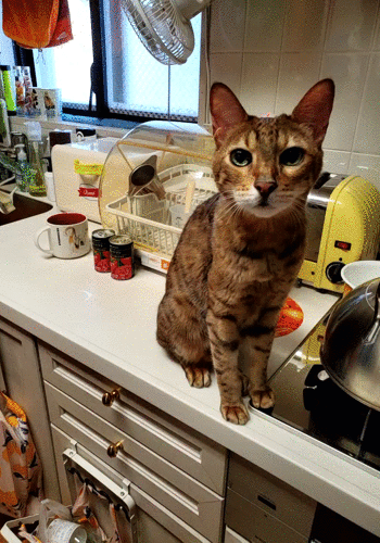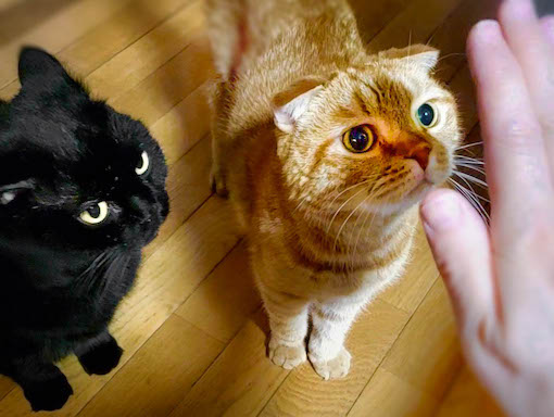 「さっき清めたばかりでござるよ!?」「だからなんにゃよ〜!?」チューバッカ(ドン)とオーバッカ(バン)の2匹は、何年たっても芸をするのはムリそうですね。