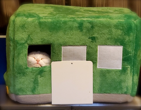 「また新しいハウスが届いたんだなっ♡」早速ゴンゴンが居心地を確かめています。