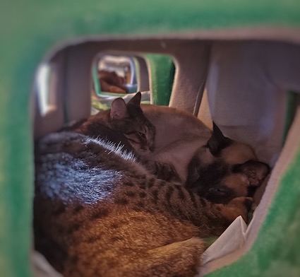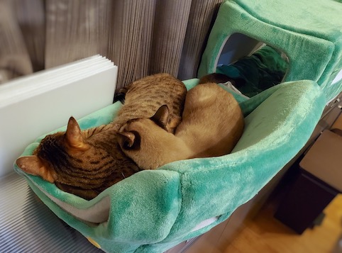 「何年も前にゴンゴンが、わらわのキャリーのドアを壊しての」「おデン様は、壊れたまま我慢してお使いでしたね」「コバンのキャリーの方は、まだ新しいうちに取っ手を噛み切られたのじゃ」「そっちもゴンの仕業でした」