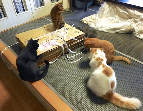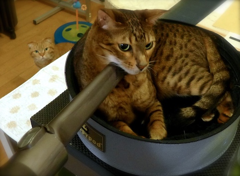 「今度は何する気なのぉ?」「畳にスチームかけるのよ」猫達がゲロゲロしたり、ウ〇チを付けたりもするので、キレイに拭き上げたいのです。