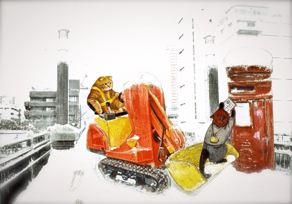 今日は大寒です。ドンごろーとコバンは寒中見舞いのハガキを出しに行きました。「お屋形様 届かないのでござる〜」「もう少し上げてやるずら」