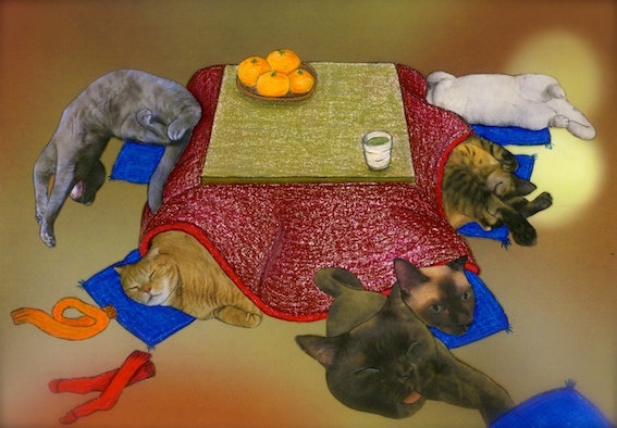 疲れたらみんなでコタツに潜ってぬくぬくお昼寝するだよぉ。