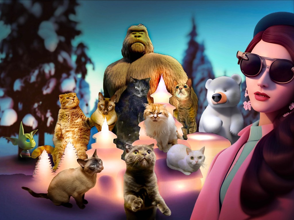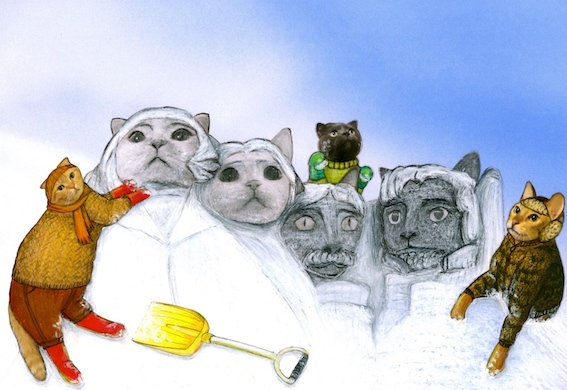 ドンごろーだよ。オラ達はスットコランド雪祭りの準備で、雪像を製作してるんだよ。これは “マウント・キャッツモア”つう観光名所ずら。知っとるけ?