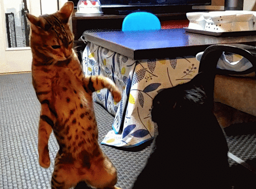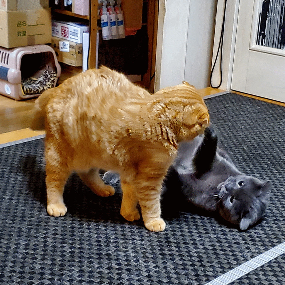 ドンと二人で息の合ったぺちぺちダンス。