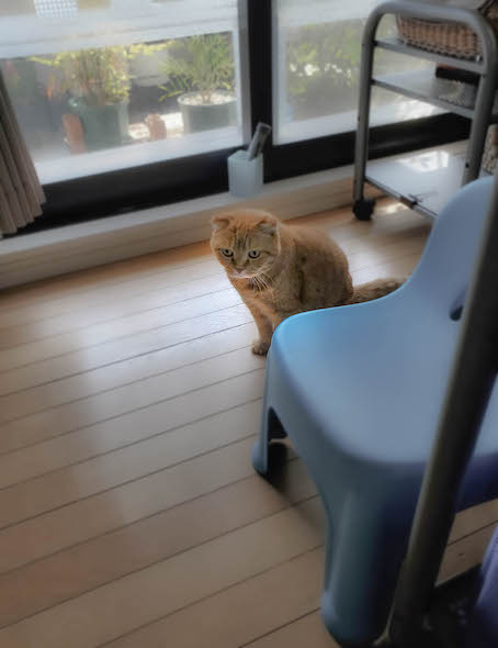 業者さんが来たので猫達に緊張が走り、ドンごろーが指示を出します。「誰か様子を見てくるずら」「拙者はクローゼットで修行を⋯」コバンはこもってて良いわよ。「アタチはコタツに隠れてるからっ」どれも急な来客時のいつもの光景ですね。