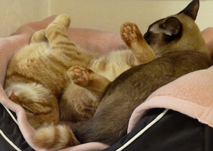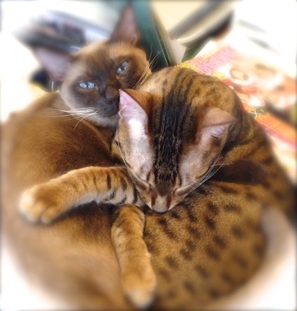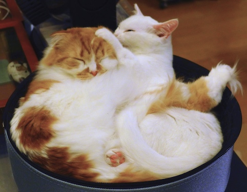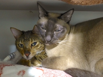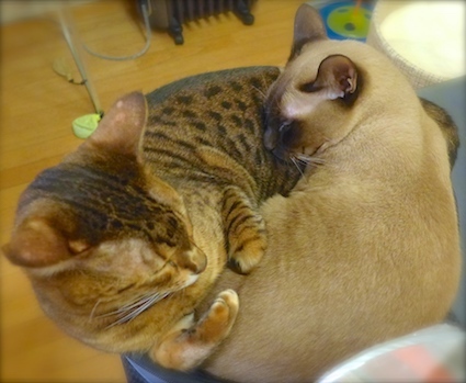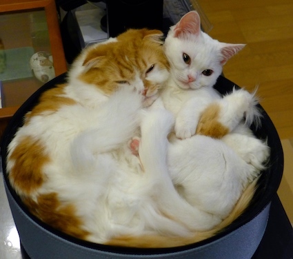あれぇ? だけどボンにゃん毎晩パパの上で寝てるんじゃないかなぁ。「ととちゃまが寂しいからよ。アタチが添い猫してあげてるのっ」