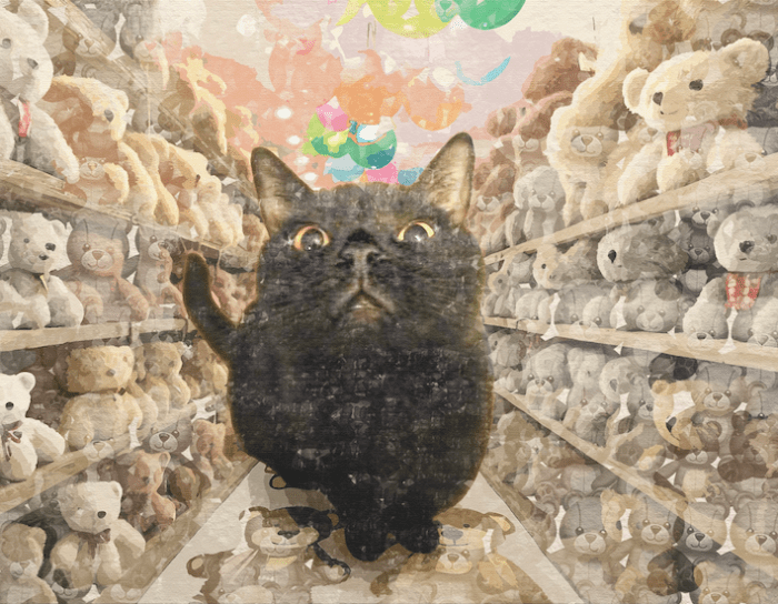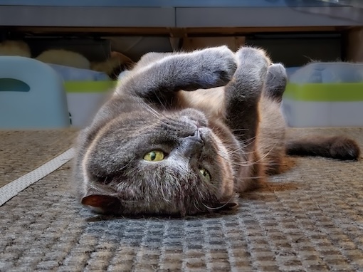 これは猫玉ではなくリアルコバンです。黒猫にはピントが合いません。肉眼でも、何やら黒い丸い物体があるようにしか見えないです。