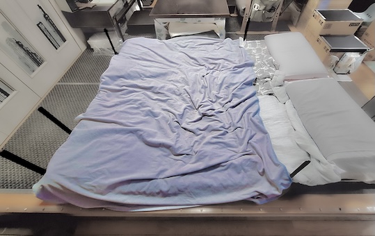以前からあちこちマーキングをするヤツですが、お布団に繰り返しスプレイするようになってしまったので、対策しました。ベッドガードを上下逆に敷布団の下に差し込み、掛け布団の上の「おねしょ用防水シーツ」の、四隅の留めゴムを掛けて外れないようにしておきます(布団横から出ている黒い棒がベッドガードの足部分)こうしないとゴンのせいで、安心して眠れません。