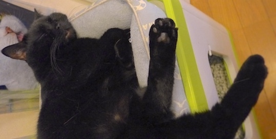 ガンちゃんが乗っているキーボードカバーは「ねこぽち」という商品名です。これを買う以前は「ぬぬぬぬぬぬリリリッ」(緊急事態かっ?)とか「JKJKぼぼぼぼ」(なんかいやらしい)とか打ち込まれてました。ちゃんと途中で変換してるのが驚き。宇宙メールを出そうとしてたのかも知れません。