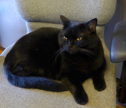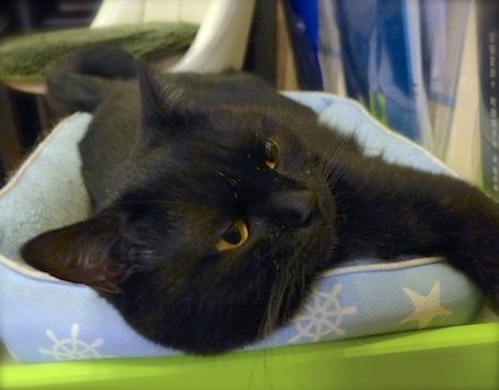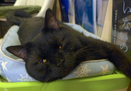 コバンを一言で表すと「もっさりしたヤツ」です。とにかくニブイというか空気読めないというか、何も分からない子なのです。家内安全・無病息災を願って連れて来た魔除けの黒猫なので、日々邪気払いやお清めに奔走し、現実社会の猫常識は通用しません。何か教えようとしてもキョトンとしているだけで、別世界しか見ていないのです。